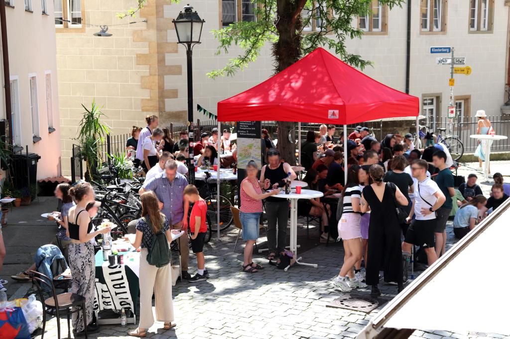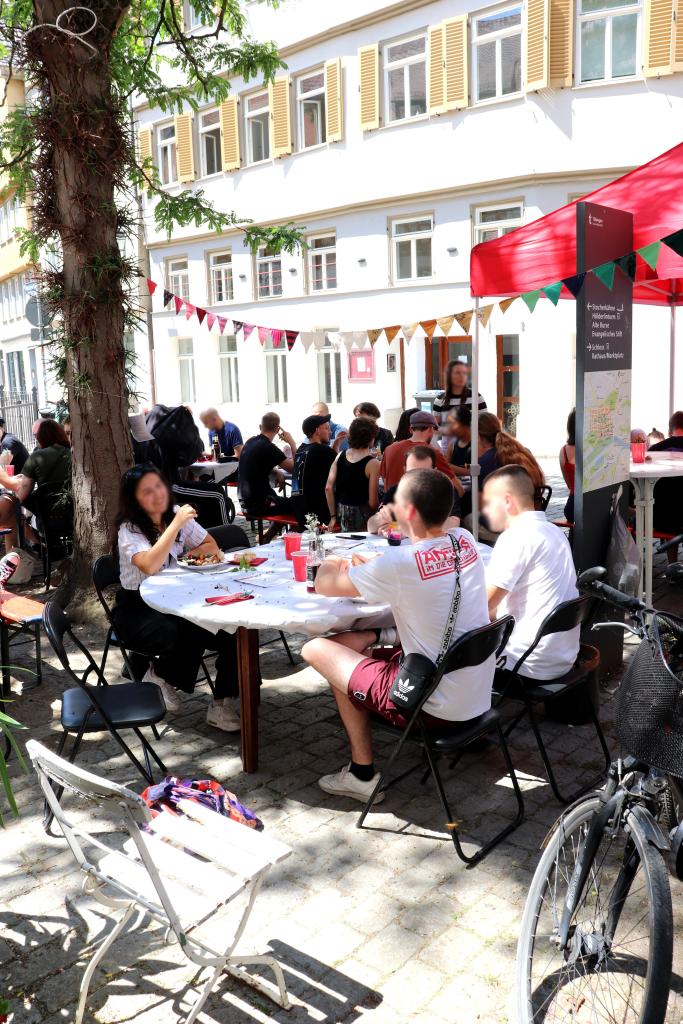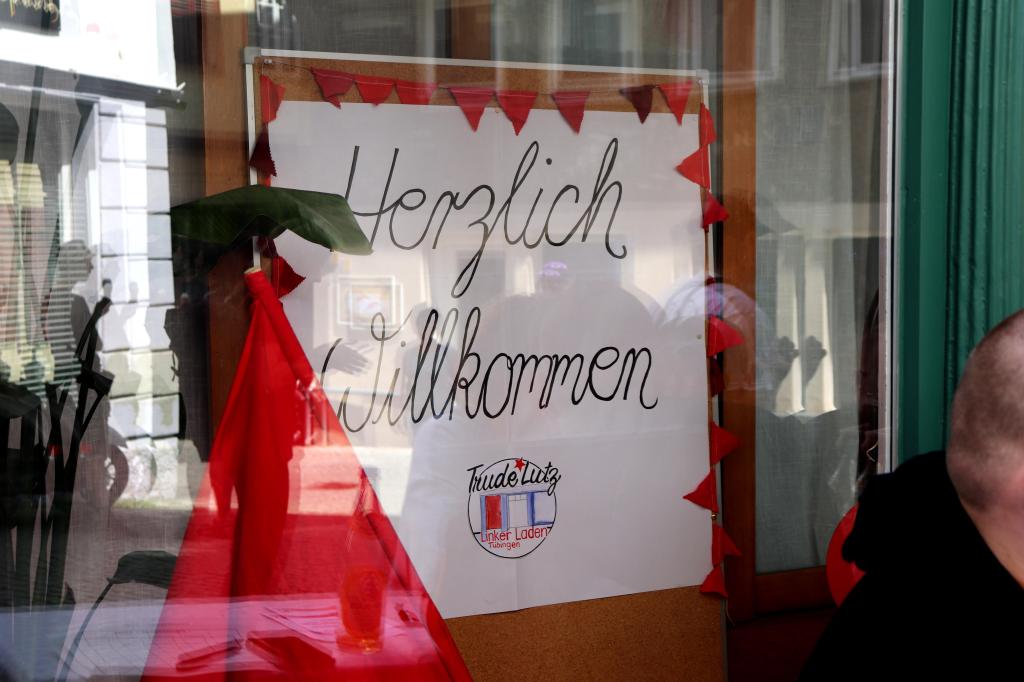 Fast 200 Menschen aus Tübingen und ganz Süddeutschland haben uns besucht und die Trude besichtigt. Wir haben gut gegessen und getrunken, diskutiert, die Sonne genossen und darauf angestoßen, dass es in Tübingen nun endlich einen Raum für die Bewegung gibt, einen Raum von Linken für Linke: den Linken Laden Trude Lutz in der Münzgasse 4!