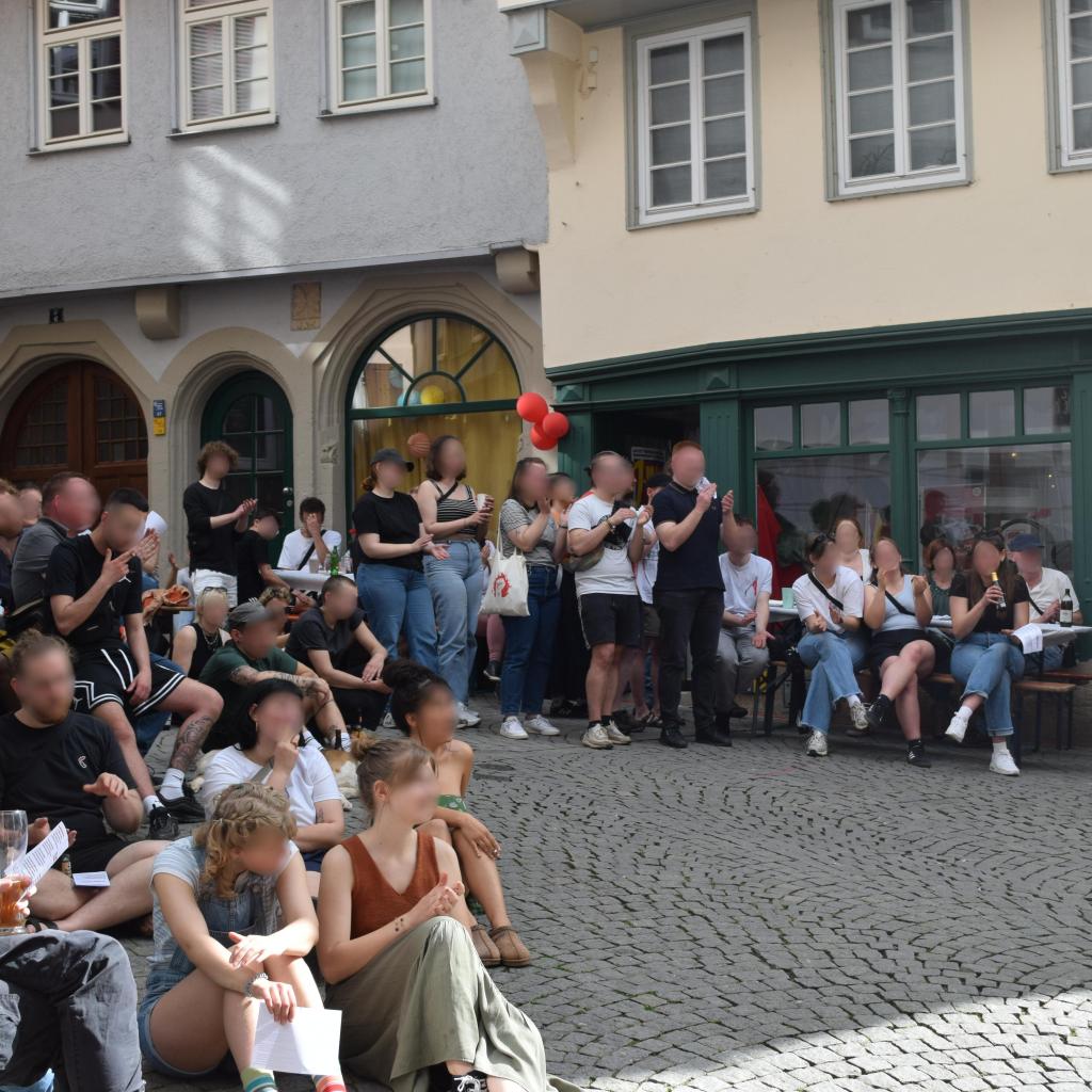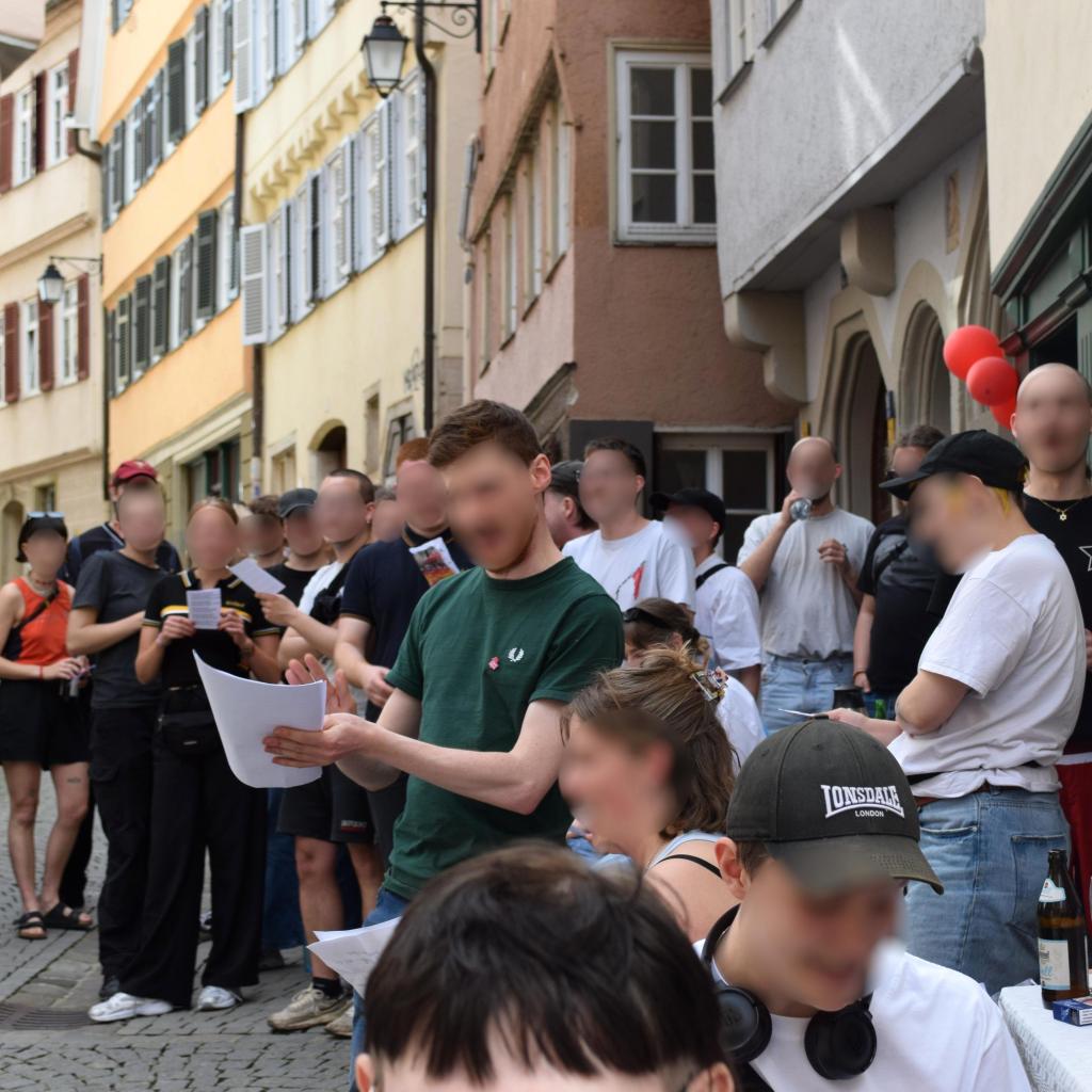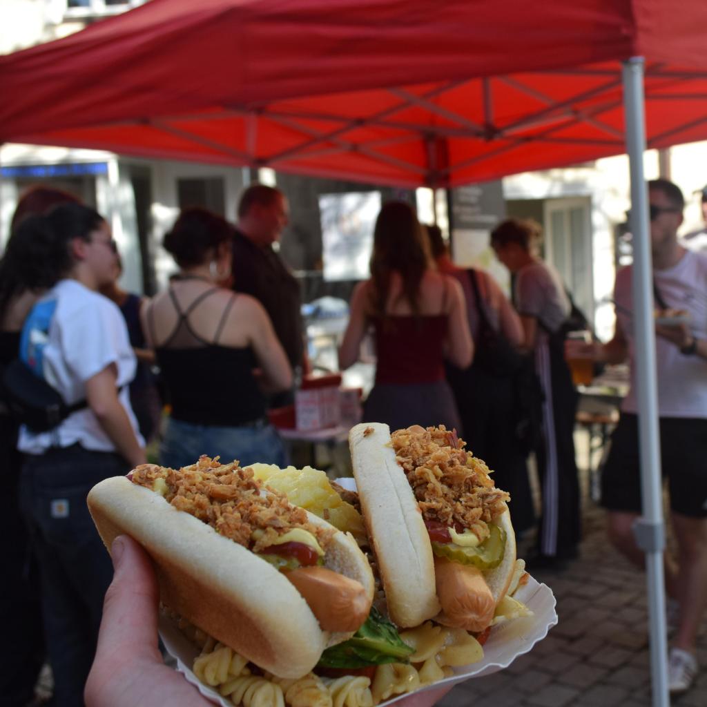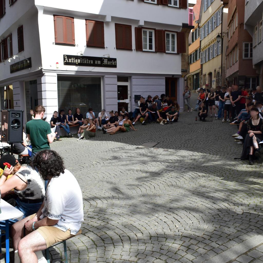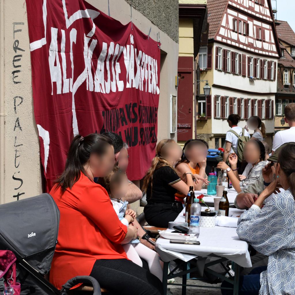 Für das leibliche Wohl war gesorgt: Erst gab es ein großes Kuchenbuffet und später Hotdogs. Zusätzlich zum guten Essen gab es aber auch politisches Programm: Infostände der offenen Treffen und eine Rede von der Initiative Antikapitalistischer 1. Mai. Mit einem Quiz zur Bewegung in Tübingen und der Frage wie man jetzt nun Bourgeoisie wirklich schreibt war das Programm dann abgerundet. Neben dem Quiz-Gewinnerteam konnten sich noch einige andere Personen über Gewinne bei der Tombola des TO AKT freuen.