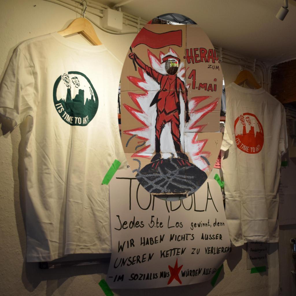 Direkt im Anschluss an die DGB-Demo und Kundgebung gab es bei uns in und um den Laden ein Strassenfest. Gemeinsam haben wir gefeiert, gelacht, gegessen, diskutiert und uns informiert.
